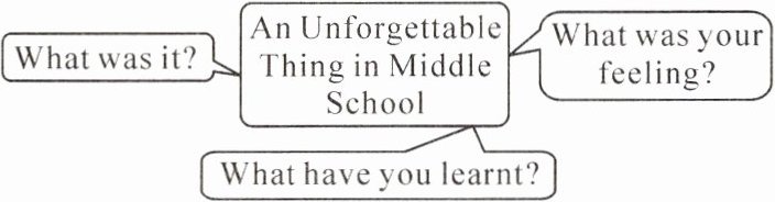 第一步:记叙文 第一人称 一般过去时 第二步:1. during the middle school 2. give up 3. encourage sb. to do sth. 4. in a row 5. the importance of... 第三步:6. During the middle school, there were many meaningful things I can't forget. 7. Facing stronger teams, we used to give up fighting soon and be the loser. 8. Our teachers encouraged us to try our best and focus on teamwork. 9. We scored two goals in a row. 10. It taught us the importance of fighting and teamwork. 第五步: An Unforgettable Thing in Middle School How time flies! Three years has gone by. During the middle school, there were many meaningful things I can't forget. The most unforgettable one was the football match I attended last year. In the game we played against a team better trained. Facing stronger teams, we used to give up fighting soon and be the loser. But this time our teachers encouraged us to try our best and focus on teamwork. Our players took every chance to pass the ball or shoot it. We scored two goals in a row. At the end of the game, we beat them by 2:1. How excited we were at this result! We were thankful for this match. Because it taught us the importance of fighting and teamwork.