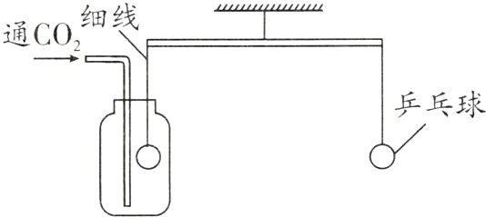 A. 通入CO₂气体后,左端乒乓球下降