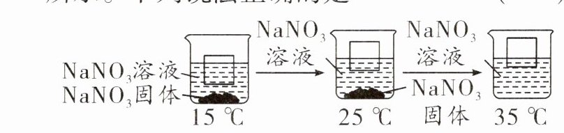 11.木块在NaNO₃溶液中排开液体的情况如图所示。下列说法正确的是 ( )