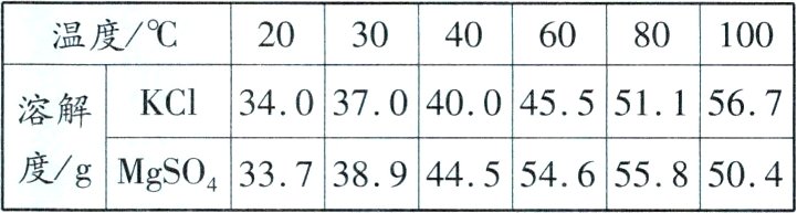 (2)海水中还含有KCl和MgSO₄等物质,其在不同温度时的溶解度如表所示,如图是对应溶解度曲线。