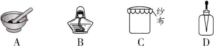 3.(2024合肥45中三模)某同学利用紫甘蓝自制酸碱指示剂的步骤依次为研碎、酒精浸泡、过滤、装瓶备用。上述步骤中没有用到的仪器是 ( )