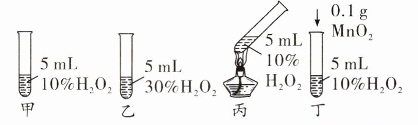 B.对比实验乙和丁,探究MnO₂对H₂O₂分解速率的影响