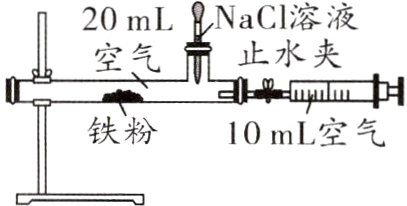 10.(2024无锡宜兴二模)某小组利用如图所示的装置(装置气密性良好)进行实验。实验时先观察一段时间,发现无明显现象,然后用胶头滴管向装置中加入氯化钠溶液,8 min后打开止水夹,发现注射器活塞向左移动。下列说法不合理的是 ( )