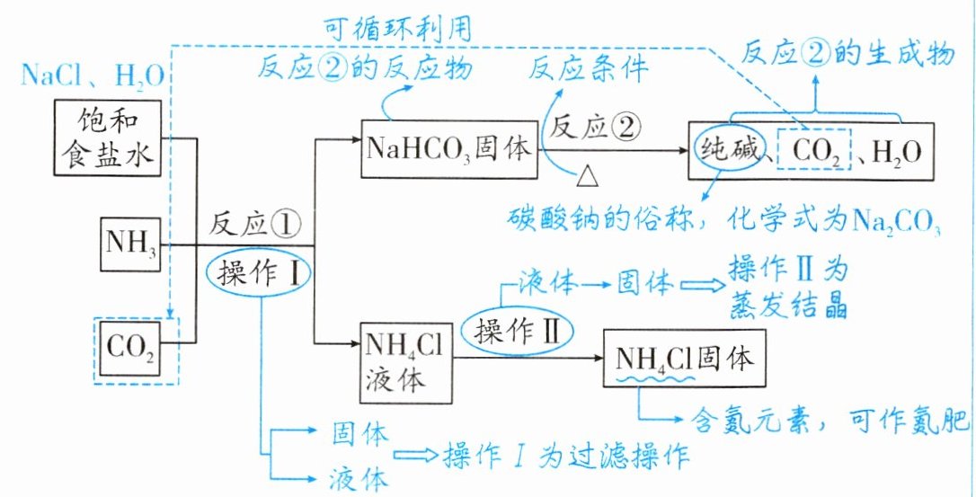例2 某化工厂使用食盐和其他原料,采用侯氏制碱法生产纯碱,其主要化工流程如图所示。