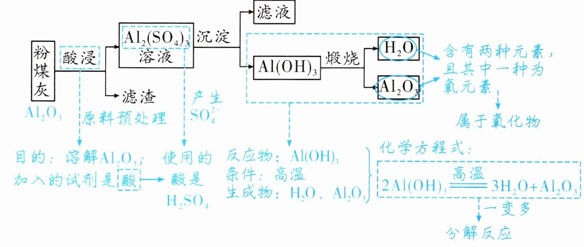 例1 (2021安徽15题)某燃煤电厂产生的固体废弃物粉煤灰中含有较多的氧化铝。从粉煤灰中提取氧化铝的工艺流程如下。