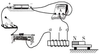(4)电磁铁的磁性强弱不仅跟电流的大小有关,而且还与线圈的匝数有关。已知线圈的电阻不能忽略,如果想研究电磁铁的磁性强弱与线圈匝数的关系,那么将滑动变阻器的连接线从a处移动到b处后,闭合开关后,下一步的操作是______________________________,然后再记录小车运动的距离。