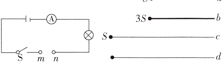 ⑤将$a$、$b$接入$m$、$n$间,探究问题是________,实验结论为______________________________;将$a$、$c$接入,结论__________________________;要探究导体电阻与材料的关系,应将______接入$m$、$n$间。