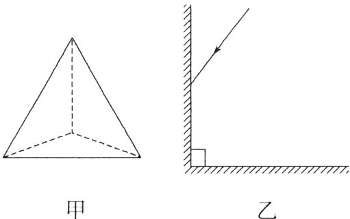 4.(2024·四川)如图甲是随嫦娥六号一起发射的角反射器的示意图,其三个反射面相互垂直,其中两个反射面如图乙所示,一束光只在这两个反射面发生了反射,请在图乙中画出这束光反射的光路图(保留作图痕迹)。
