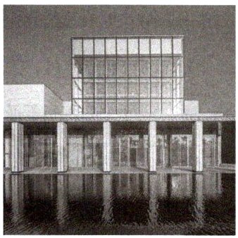 解析 影子是沿直线传播的光被不透明的建筑物挡住,在建筑物后面的地面上光照不到的地方形成的;通过地面上一层薄薄的积水还可以看到建筑物的像,是平面镜成像,像的大小与建筑物的大小相等;当强烈的太阳光照射到玻璃幕墙的表面时,会发生镜面反射,反射光线非常集中,炫目的光会干扰人们的正常生活,造成“光污染”。