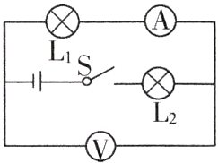 2. 如图所示电路,开关S闭合后,两灯均发光,电压表测的是灯_________(选填“L₁”或“L₂”)两端电压。一段时间后,两灯均熄灭,但电压表有读数且示数较大,电流表无读数,则故障可能是_________(选填“L₁短路”“L₁断路”或“L₂断路”)。