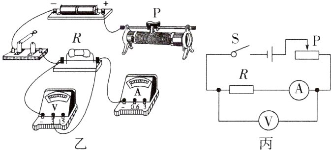 (2)由电路图甲可知,定值电阻与滑动变阻器串联,电压表测量定值电阻两端的电压,电流表测量电路中的电流。由于电流表无示数,说明电路中某处断开,电压表无示数说明电压表不能与电路两极连通;由电路图丙可知,电压表测量定值电阻和电流表两端的电压,此时电压表有示数,说明电压表能与电源两极连通,则故障可能是电流表断路或与电流表相连的某根导线断了。