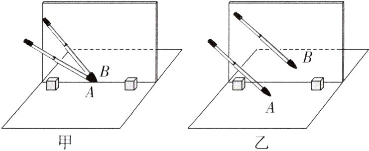 (1)如图甲所示,让玻璃板的镀膜面向前并把玻璃板竖直放在水平桌面的白纸上,让中性笔A的笔尖紧贴在玻璃板前,在玻璃板后面无论怎么移动中性笔B,都不能让B与A的像完全重合,原因是______________。