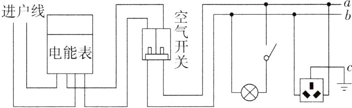 [解析] 由图可知,开关接在导线a上,故导线a是火线,故A错误;电能表上计数器示数的单位是千瓦时,故B错误;家庭电路中发生短路或者用电器总功率过大都会导致空气开关跳闸,故C正确;正确使用试电笔插入三孔插座的某一孔,氖管灯不亮,该孔可能是零线,也可能是地线,故D 错误。