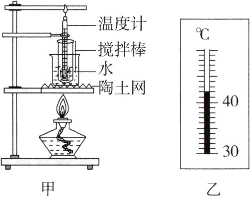 (2)乙图中温度计的分度值为1℃,示数为42℃;(3)由实验数据可知,海波从第4到第9分钟温度保持48℃不变,所以海波是晶体,其熔点为48℃;(4)由实验数据可知,海波在加热过程中吸热,在温度到了48℃才熔化,因此海波熔化需要的条件是①温度到达熔点;②继续吸收热量;(5)该物质是晶体,熔化过程中温度应不变,烧杯