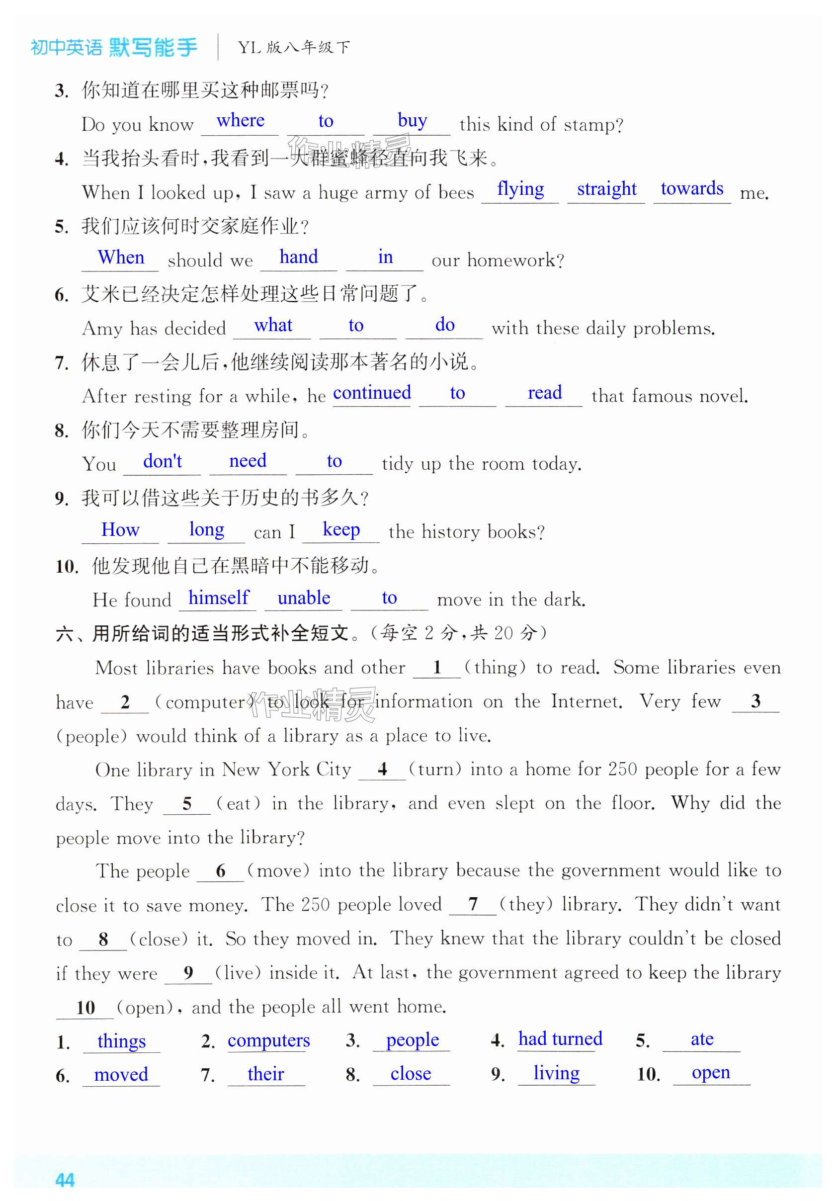 注:目前有些书本章节名称可能整理的还不是很完善,但都是按照顺序排列的,请同学们按照顺序仔细查找。练习册 2025年默写能手八年级英语下册译林版 答案主要是用来给同学们做完题方便对答案用的,请勿直接抄袭。