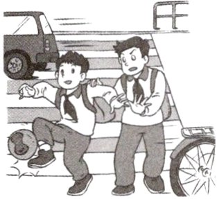 —Look out for the ________! You mustn’t do that, Liu Tao. It’s not ________. There are lots of ________ and bikes on the road. They’re running ________.