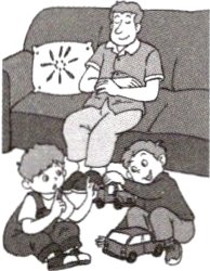 1 Mr Brown is s______, so Tim and Jim are playing with their toy cars q______.