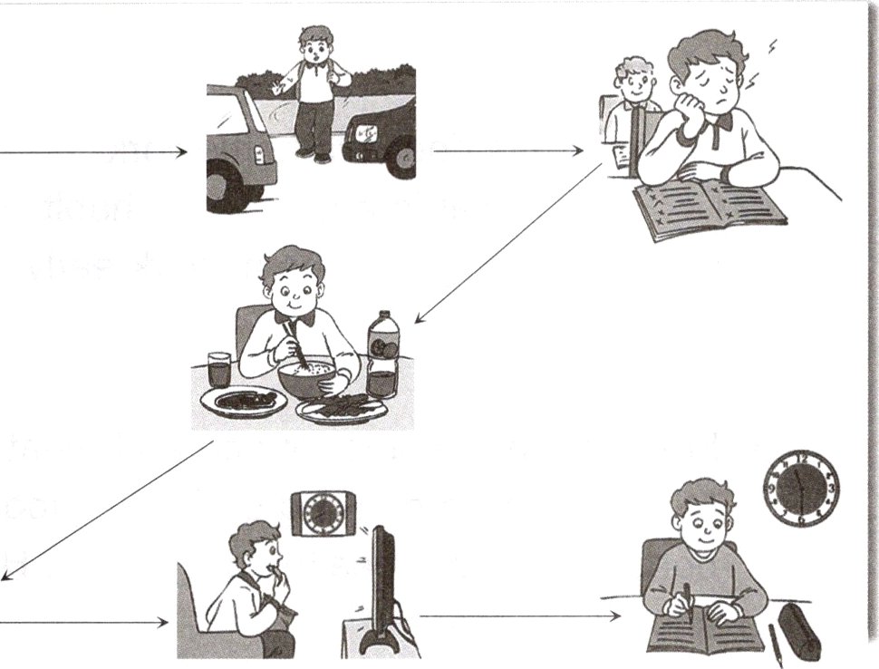 3 John feels sleepy in class. He does not listen to his teacher carefully. He does badly at school.