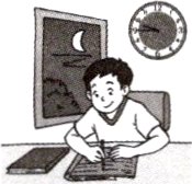 3 —It’s 9:45. Frank is doing his homework.