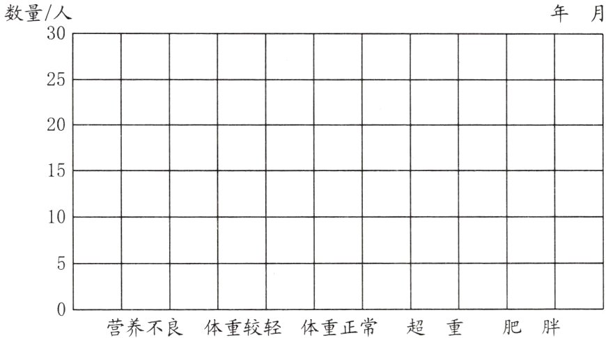 根据已知数据计算每种体重情况的人数,先填写下表,再完成下面的条形统计图。