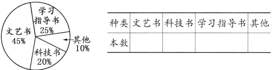 (2)六年级二班对全班50人喜欢各种图书的情况作了调查,结果如左图。六年级二班同学中喜欢文艺书的有( )人,喜欢科技书的有( )人。