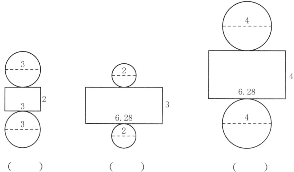 2. 下面哪个图形是圆柱的展开图?在括号里画“√”。(单位:cm)