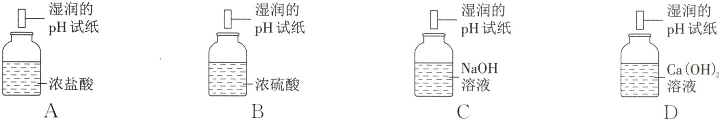 1. 小科在研究物质的酸碱性时做了下列实验,打开塞子后,能看到pH试纸变色的是 ( )