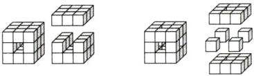 图2挖去部分为6个面中心和正方体体中心各1个小正方体。