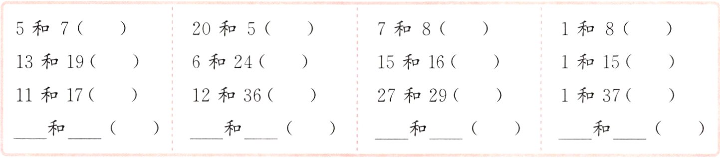 4. 在括号里写出每组数的最大公因数,根据每组数的特点再各写出一组,并完成填空。