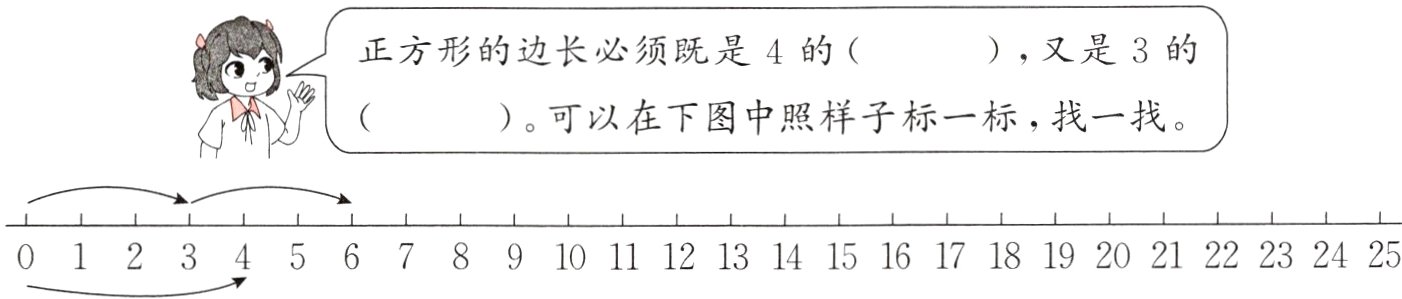 3. 一种长方形瓷砖长4dm,宽3dm。如果用这种瓷砖铺一个正方形(用的瓷砖必须都是整块的),那么这个正方形的边长可以是( )dm,( )dm……边长最短是( )dm。