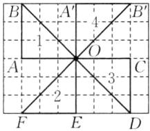 (2) 图形1绕点O逆时针旋转180°,到达图形( )的位置。