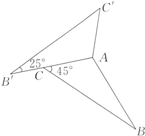 (2)根据三角形ABC旋转前后图形的大小和形状不变,可知旋转前后对应角的大小不变,因此∠AC'B'=∠ACB=45°。再根据三角形内角和是180°,可以求出∠1=180°-25°-45°=110°。