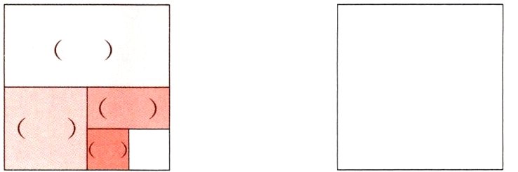 悦悦:可以画图帮助思考,用一个大正方形表示“1”,这个算式可以用图中的涂色部分表示。请你在图中填上合适的数。