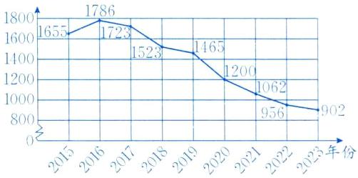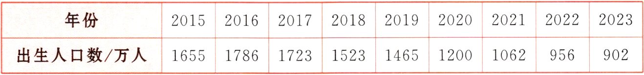 2. 下面是2015−2023年全国出生人口数统计情况,请根据统计表绘制折线统计图,并回答问题。