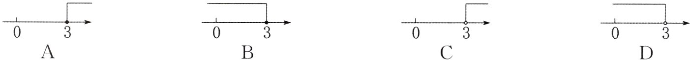 2. (2024·宁夏)已知|3-a|=a-3,则a的取值范围在数轴上表示正确的是 ( )