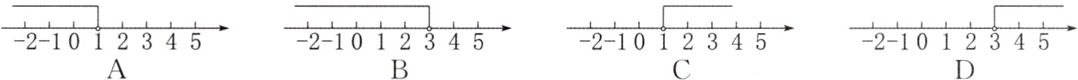 5.(2023·安徽)在数轴上表示不等式$\frac{x - 1}{2}<0$的解集,正确的是( )