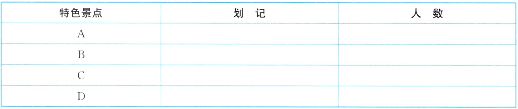 7. 为了了解某班全体同学喜欢去某市特色景点游玩的情况,小明对班级32名同学进行调查,得到最喜欢的A,B,C,D四个特色景点的调查结果如下: