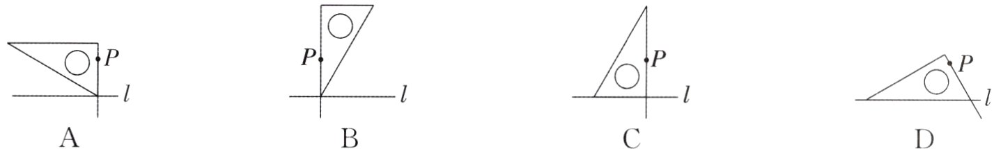 1. 下列各图中,过直线l外的点P画直线l的垂线,三角尺操作正确的是( )