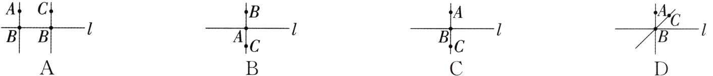 1. (教材P9习题7.1第8题变式)已知直线AB,CB,l在同一平面内. 若AB⊥l,垂足为B,CB⊥l,垂足也为B,则符合题意的图形可以是 ( )