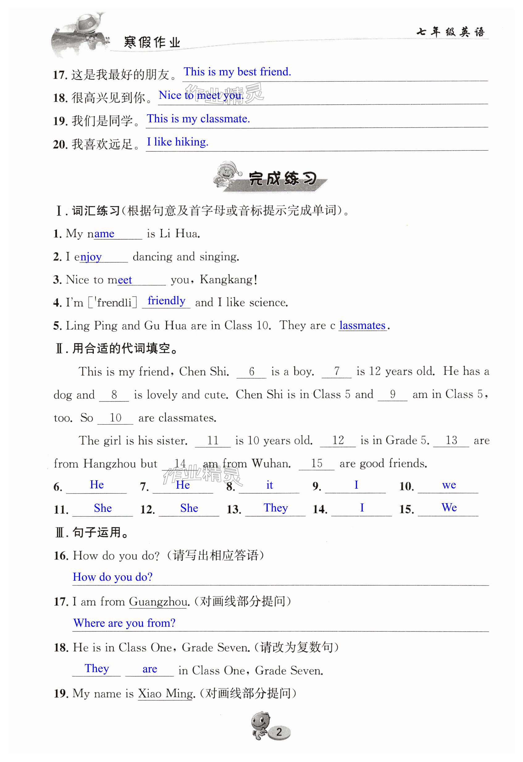 《2025年寒假作业长江出版社七年级英语仁爱版》