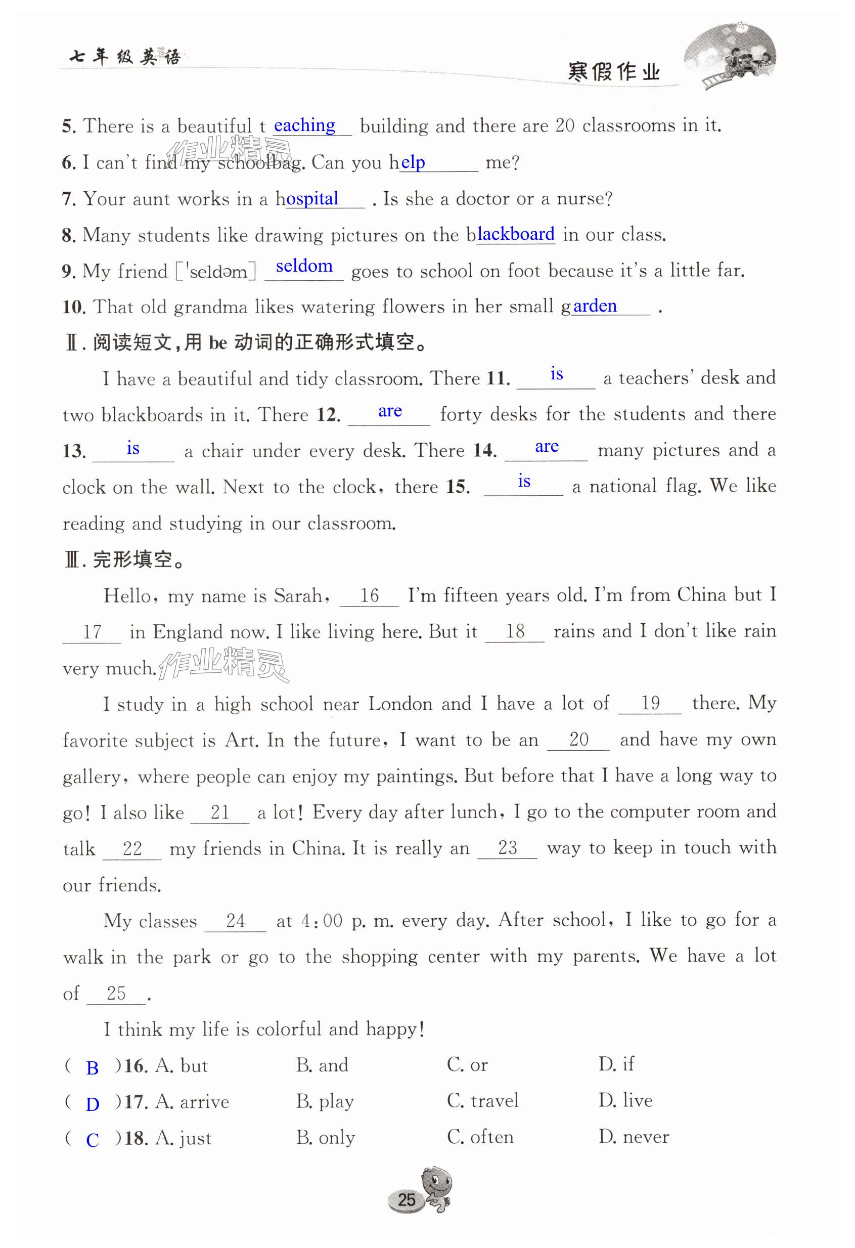 注:目前有些书本章节名称可能整理的还不是很完善,但都是按照顺序排列的,请同学们按照顺序仔细查找。练习册 2025年寒假作业长江出版社七年级英语仁爱版 答案主要是用来给同学们做完题方便对答案用的,请勿直接抄袭。