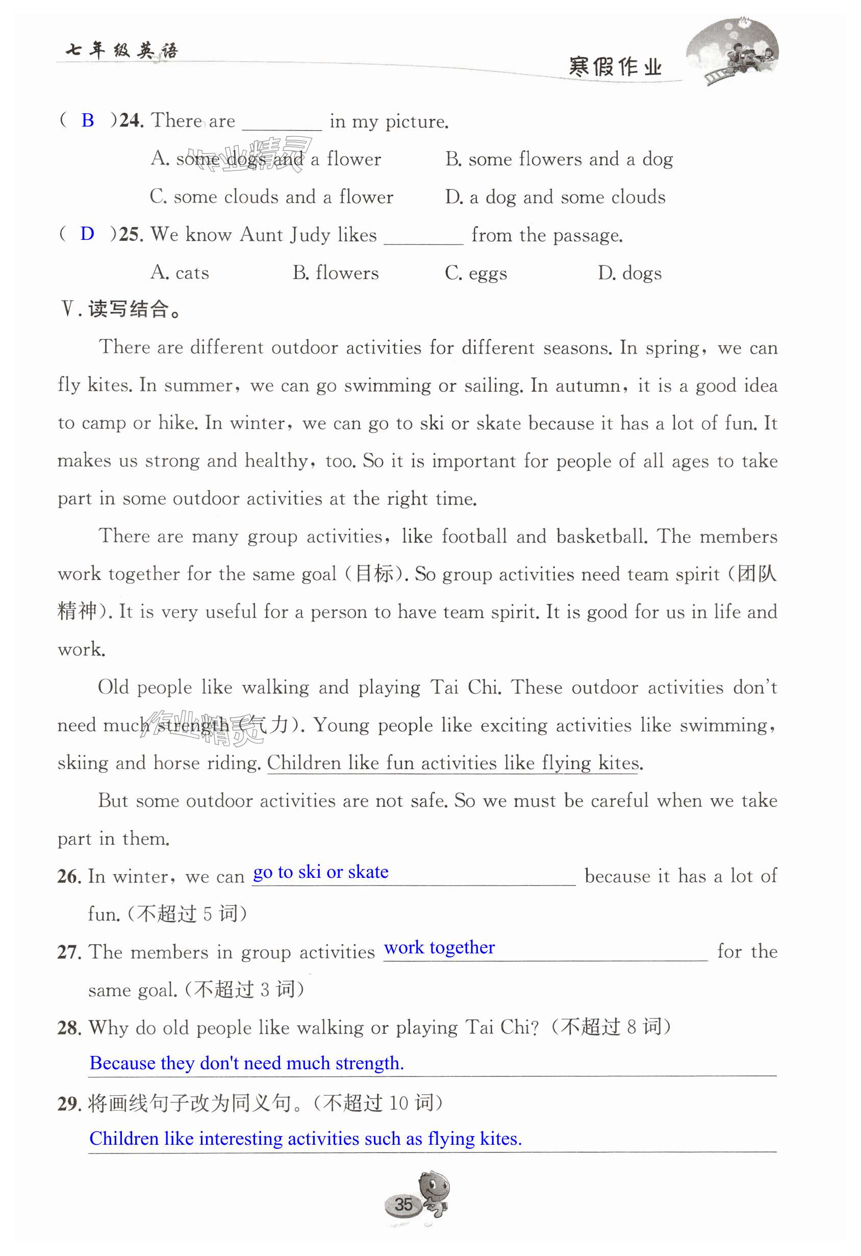 注:目前有些书本章节名称可能整理的还不是很完善,但都是按照顺序排列的,请同学们按照顺序仔细查找。练习册 2025年寒假作业长江出版社七年级英语仁爱版 答案主要是用来给同学们做完题方便对答案用的,请勿直接抄袭。
