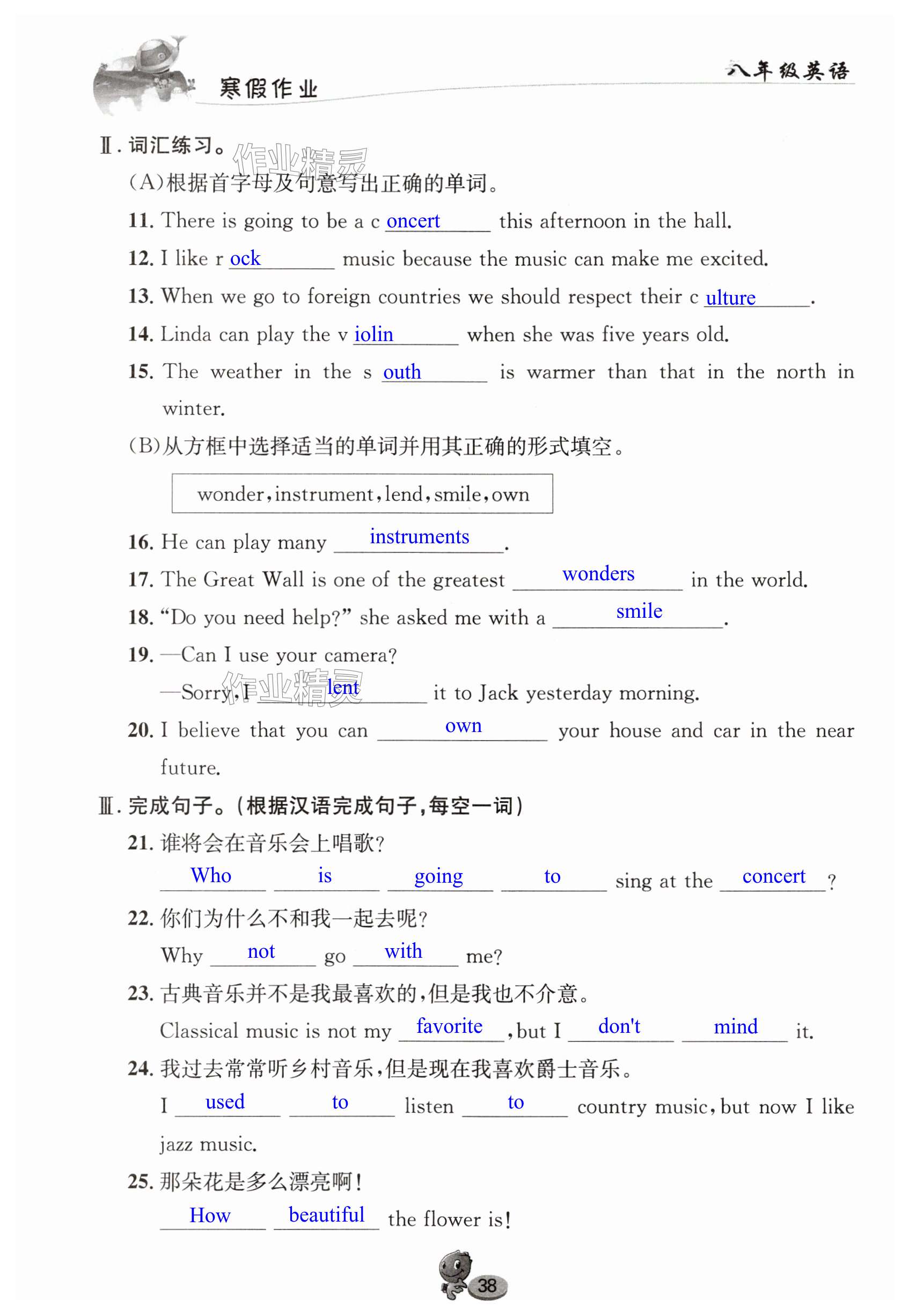 注:目前有些书本章节名称可能整理的还不是很完善,但都是按照顺序排列的,请同学们按照顺序仔细查找。练习册 2025年寒假作业长江出版社八年级英语仁爱版 答案主要是用来给同学们做完题方便对答案用的,请勿直接抄袭。