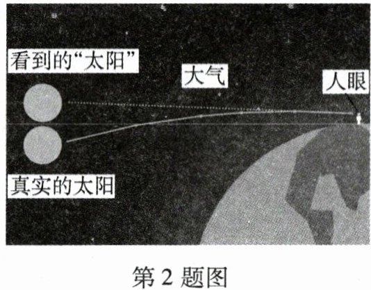 2.在地球上观看日出时能看到地平线以下的太阳,如图。下列现象与此原理相同的是(
