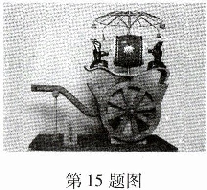 15.如图是中国古代的计程车--"计里鼓车"。当车走一里时,车上的木人就敲一下鼓,鼓面由于
