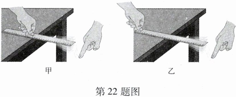 22.(4分)在探究影响音调的因素实验中,小明将直尺一端压在桌面上,另一端伸出桌面。