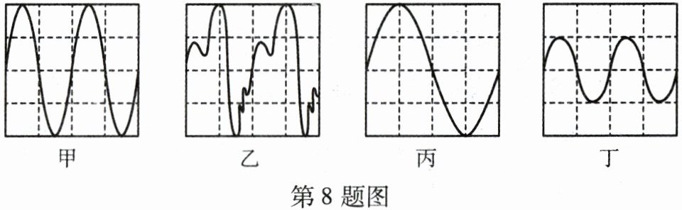 )A.乙、丁的音调和音色相同