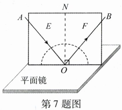 7. 如图所示, 在探究光的反射定律实验中, 纸板由 $ E $、$ F $ 两部分组成, 可以绕 $ ON $ 翻折, 若将纸板 $ F $ 向后翻折, 则(
