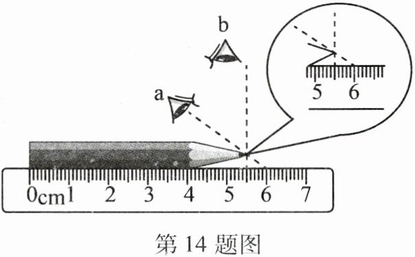 14. 如图所示用刻度尺测量铅笔的长度, 读数方法正确的是