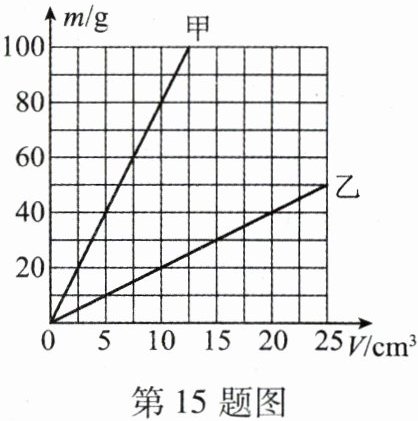 15.如图所示是根据甲、乙两种物质的质量和体积的实验数据绘制成的m-V图像,甲的密度与乙的密度之比为
